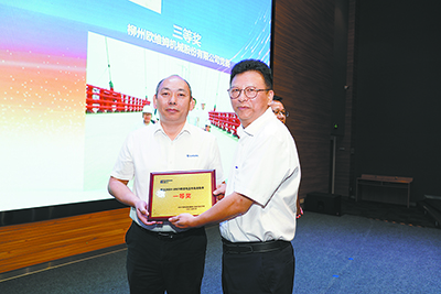 賴頌平(右)為“柳工2024-2025宣傳工作先進集體”頒獎。